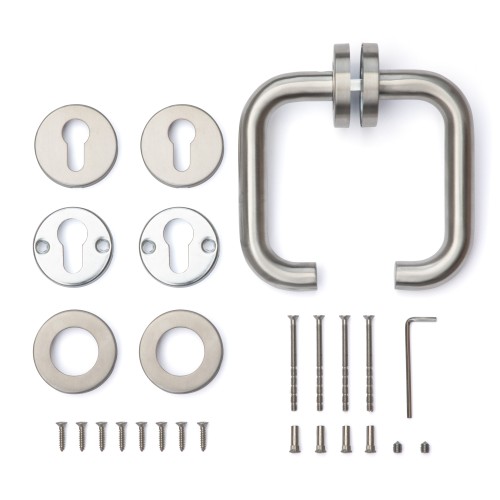 La manilla H102 de IFAM está fabricada en acero inoxidable, lo cual la hace resistente al desgaste y fácil de limpiar, ideal para espacios públicos.